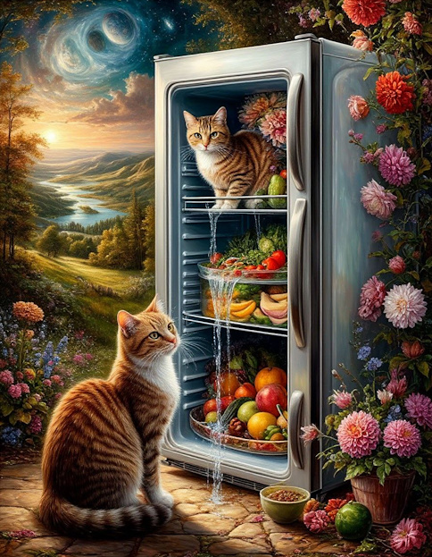 Теория порталов утверждает, что холодильник является своеобразным межпространственным переходом. Когда ваша кошка настойчиво скребётся в дверь холодильника, она пытается добраться до своей истинной родины — мира, где еда появляется сама по себе, а миски никогда не пустеют.